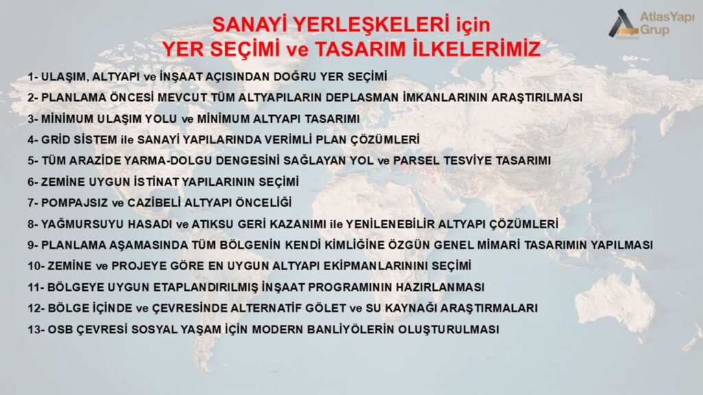 Firmamız, organize sanayi bölgeleri (OSB), sanayi yatırım alanları ve endüstri bölgeleri başta olmak üzere, sanayiye yönelik altyapı ve üstyapı projelerinde uzmanlaşmış bir mühendislik ve uygulama firmasıdır.